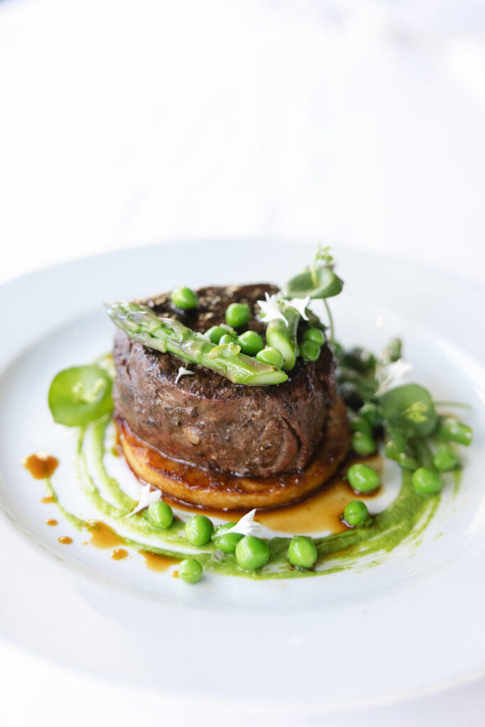 A Maine lobster raviolo with wild ramps, English peas, and morel mushrooms leads into our signature almond wood grilled filet mignon with local asparagus, pommes purĂŠes, and sauce bĂŠarnaise.